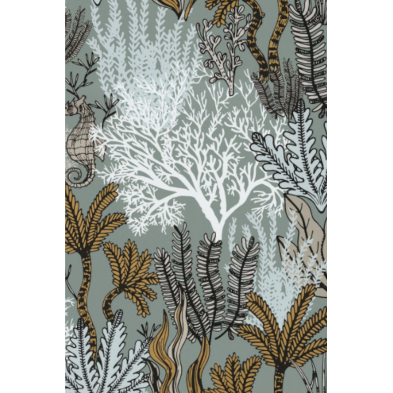 Casamance orphee posidonie celadon ref 74700100 Une collection évocatrice du « Cortège d'Orphée » d'Apollinaire, dans lequel poète associe un portrait d'animal à une image. Collection précieuse, ORPHEE donne vie à de merveilleux dessins et laisse surgir la magie d'un monde végétal et animal. Déposées subtilement sur les encres mates, des finitions métalliques illuminent le graphisme de la collection, apportant du relief au motif et révélant la finesse de ses contours. Une collection lumineuse, d'une grande richesse chromatique, qui nous immerge dans la profondeur des océans et des forêts.