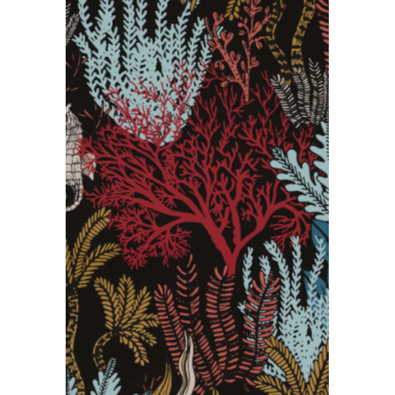 Casamance orphee posidonie multico ref 74700508 Une collection évocatrice du « Cortège d'Orphée » d'Apollinaire, dans lequel poète associe un portrait d'animal à une image. Collection précieuse, ORPHEE donne vie à de merveilleux dessins et laisse surgir la magie d'un monde végétal et animal. Déposées subtilement sur les encres mates, des finitions métalliques illuminent le graphisme de la collection, apportant du relief au motif et révélant la finesse de ses contours. Une collection lumineuse, d'une grande richesse chromatique, qui nous immerge dans la profondeur des océans et des forêts.