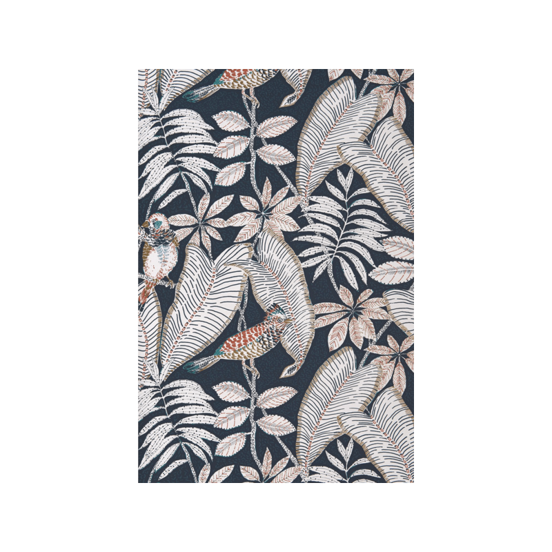 Casamance orphee sibia marine ref 74752352 Une collection évocatrice du « Cortège d'Orphée » d'Apollinaire, dans lequel poète associe un portrait d'animal à une image. Collection précieuse, ORPHEE donne vie à de merveilleux dessins et laisse surgir la magie d'un monde végétal et animal. Déposées subtilement sur les encres mates, des finitions métalliques illuminent le graphisme de la collection, apportant du relief au motif et révélant la finesse de ses contours. Une collection lumineuse, d'une grande richesse chromatique, qui nous immerge dans la profondeur des océans et des forêts.
