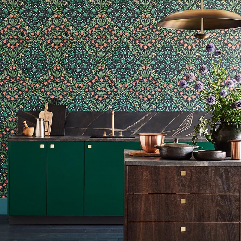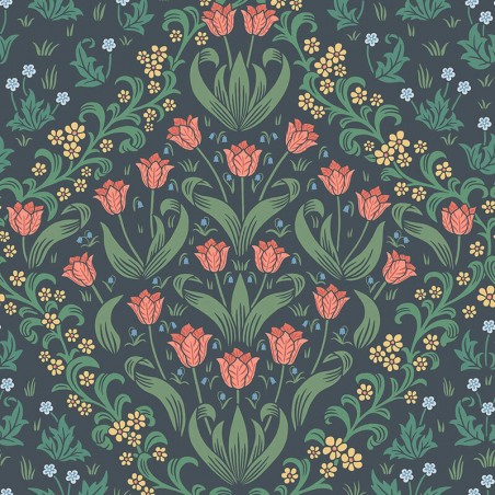 Inspiré par les jardins à n?uds élaborés du « palais de plaisance » d'Henri VIII à Hampton Court, le jardin Tudor est un imprimé floral structuré représentant des plantes que l'on trouve aujourd'hui dans le parc. Les tulipes, l'une des préférées de Marie II, sont cueillies et bordées d'herbes odorantes et de fleurs sauvages des prairies des jardins à la française et au-delà. Cette étude stylisée adoucit la forme géométrique, apportant un design d'inspiration Tudor au 21e siècle.
