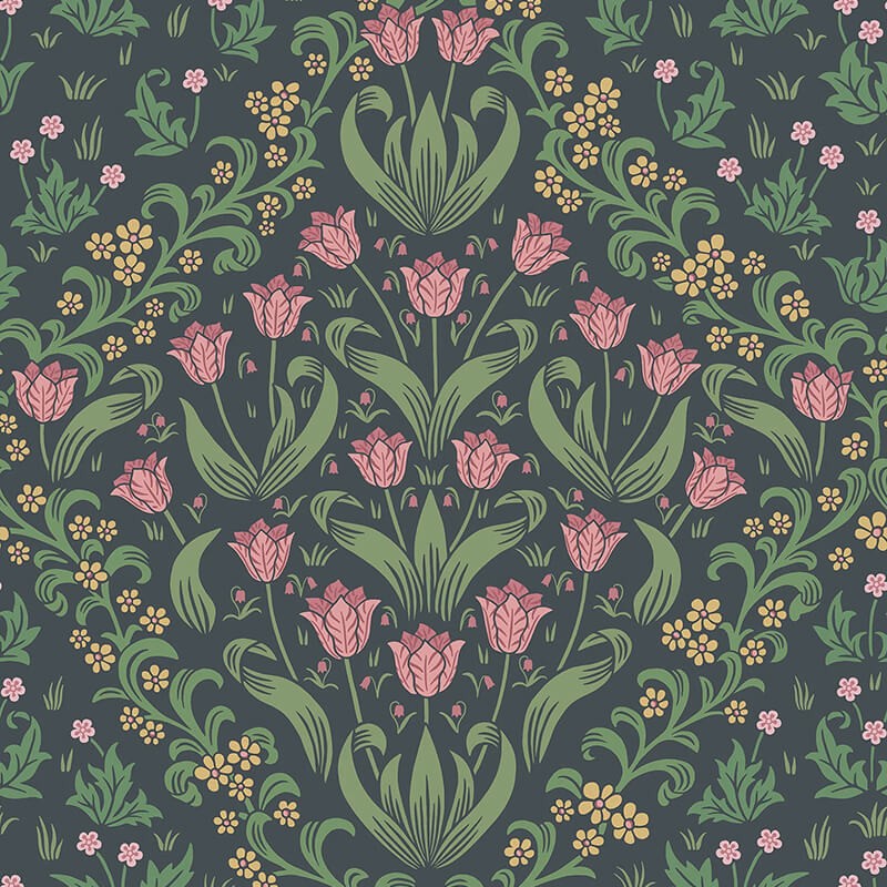 Inspiré par les jardins à n?uds élaborés du « palais de plaisance » d'Henri VIII à Hampton Court, le jardin Tudor est un imprimé floral structuré représentant des plantes que l'on trouve aujourd'hui dans le parc. Les tulipes, l'une des préférées de Marie II, sont cueillies et bordées d'herbes odorantes et de fleurs sauvages des prairies des jardins à la française et au-delà. Cette étude stylisée adoucit la forme géométrique, apportant un design d'inspiration Tudor au 21e siècle.