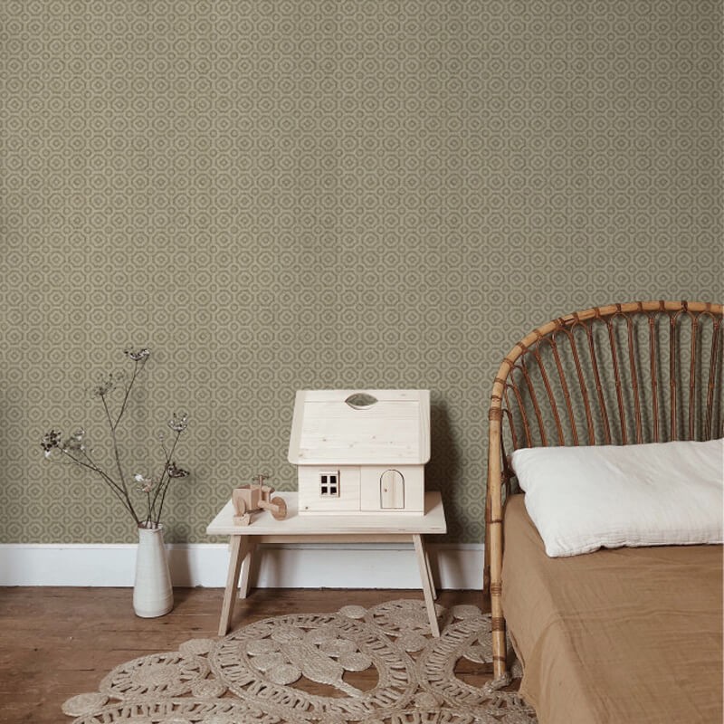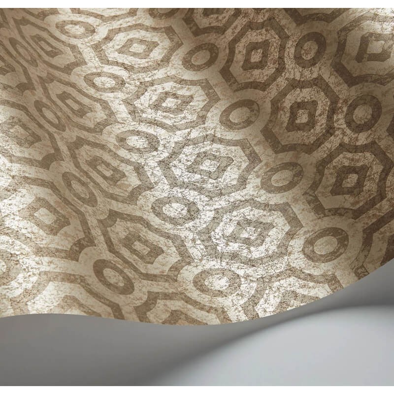 Saisissant et contemporain, Queen's Quarter est un géométrique opulent, tiré d'un petit détail dans un schéma beaucoup plus vaste de peintures murales Verrio. Ses octogones irréguliers apparaissent comme des vignettes d'angle dans le salon de la reine au palais de Hampton Court, dont la décoration a été commandée par la reine Anne comme une grande déclaration de sa majesté royale et de son pouvoir impérial. Les peintures murales dans leur ensemble ont été conçues pour créer l'illusion d'une salle de marbre ouverte sur le ciel, avec les murs peints pour ressembler à des tapisseries avec de larges bordures florales et des franges dorées. Cependant, c'est le métal bruni de Queen's Quarter qui a frappé l'équipe créative de Cole & Son, sa répétition discrète et ses détails élégants révélant un joyau caché dans le schéma traditionnel beaucoup plus vaste.