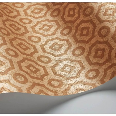 Saisissant et contemporain, Queen's Quarter est un géométrique opulent, tiré d'un petit détail dans un schéma beaucoup plus vaste de peintures murales Verrio. Ses octogones irréguliers apparaissent comme des vignettes d'angle dans le salon de la reine au palais de Hampton Court, dont la décoration a été commandée par la reine Anne comme une grande déclaration de sa majesté royale et de son pouvoir impérial. Les peintures murales dans leur ensemble ont été conçues pour créer l'illusion d'une salle de marbre ouverte sur le ciel, avec les murs peints pour ressembler à des tapisseries avec de larges bordures florales et des franges dorées. Cependant, c'est le métal bruni de Queen's Quarter qui a frappé l'équipe créative de Cole & Son, sa répétition discrète et ses détails élégants révélant un joyau caché dans le schéma traditionnel beaucoup plus vaste.