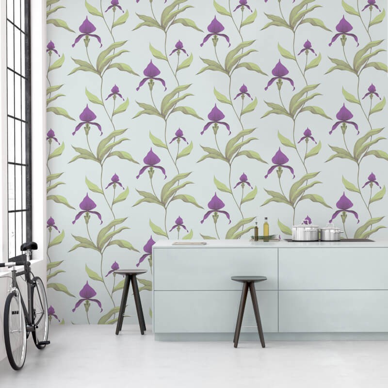 | Couleur Papier Peint | Purple & Leaf Green on Seafoam |