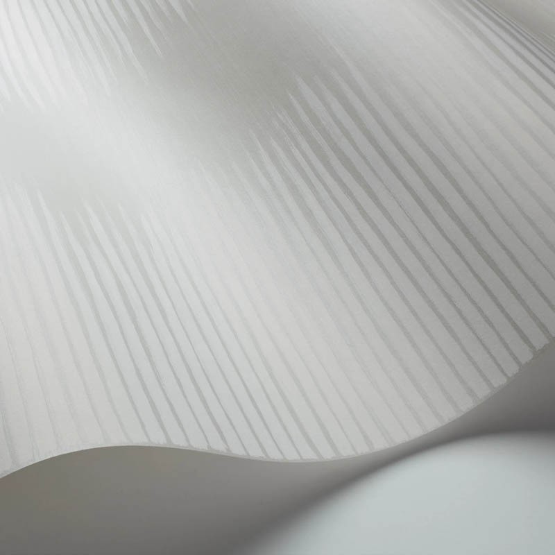 Conçue dans le studio de design Cole & Son, la calligraphie, Plume, est un motif de rayures à bandes peintes à la main qui se répète doucement et qui s'inspire de l'art mondial et de la fabrication de marques du monde entier. Des coups de pinceau doux et plumeux en gris, anthracite, or métallique et bronze reposent sur des fonds texturés crayeux de fusain, de pierre et de blanc conservant la texture organique de l'impression.