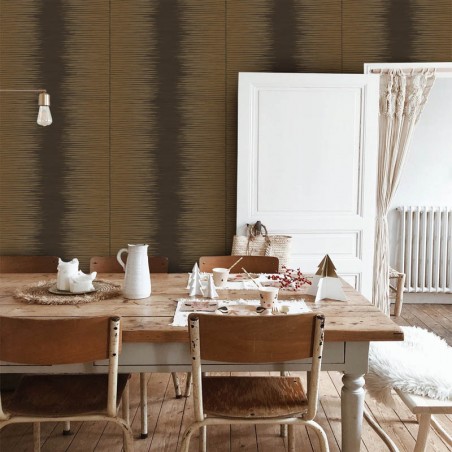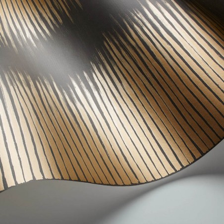 Conçue dans le studio de design Cole & Son, la calligraphie, Plume, est un motif de rayures à bandes peintes à la main qui se répète doucement et qui s'inspire de l'art mondial et de la fabrication de marques du monde entier. Des coups de pinceau doux et plumeux en gris, anthracite, or métallique et bronze reposent sur des fonds texturés crayeux de fusain, de pierre et de blanc conservant la texture organique de l'impression.