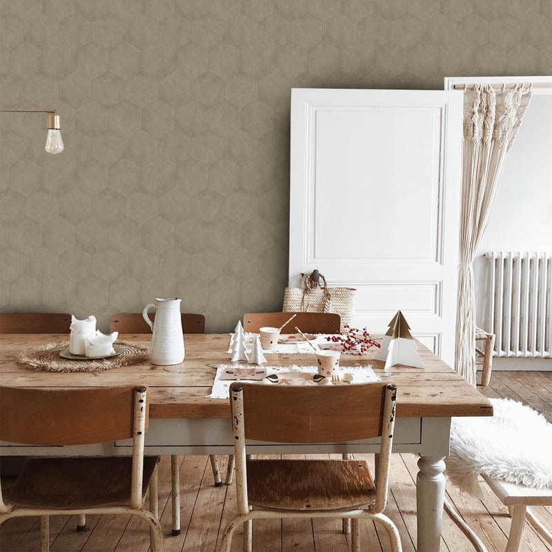 La géologie rencontre la géométrie dans le minéral énigmatique complexe avec ses métaux doux et chatoyants et brunis. Disposés dans un arrangement de tuiles hexagonales dessinées à la main, ces colorants organiques fumés comprennent un charbon de bois poussiéreux, une perle, de l'étain et une huître, parfaits pour une lumière du jour élégante ou une lumière douce et peu éclairée du soir.