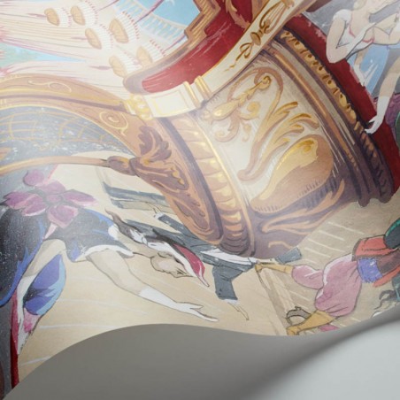 Un design d'archive très inhabituel, Cabaret est un papier peint exubérant avec une narration forte. Avec son imagerie de carnaval et ses couleurs mettant en vedette des danseurs tourbillonnants, ce modèle est proposé dans un seul et beau coloris.