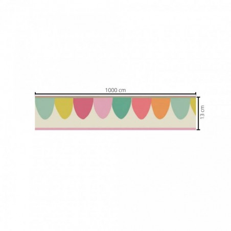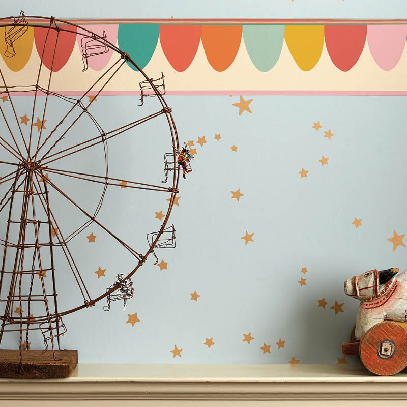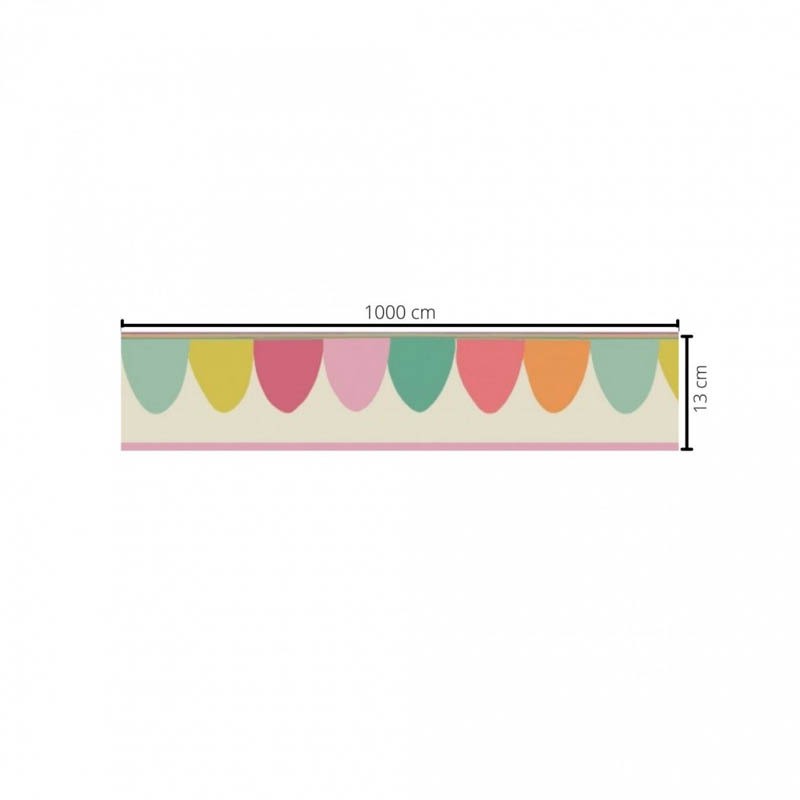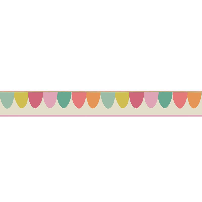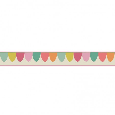 Rappelant les guirlandes de carnaval, cette bordure fine a été conçue pour ajouter une touche de fantaisie à un intérieur. Offert dans des couleurs vives exubérantes, des olives et des violets maussades et des pastels crayeux plus doux, Scaramouche peut être appliqué n'importe où dans une pièce.