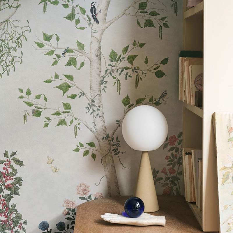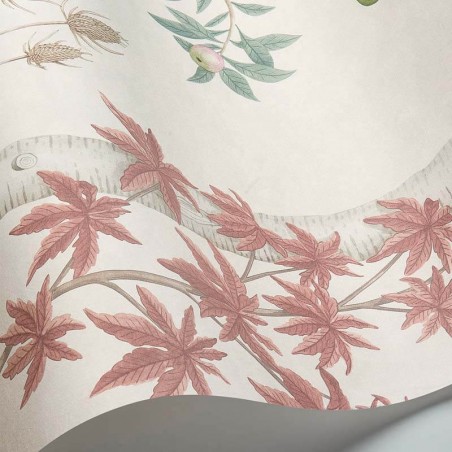 Seasonal Woods célèbre la charmante sophistication d'une nature préservée. Conservant l'authenticité de l'icône vivace de Cole & Son, Woods, Seasonal Woods présente des bouleaux argentés peints d'une main plus douce, entourés d'une symphonie de flore et de faune boisées tout au long de l'année. Comme un mouvement de ballet, chaque arbre est plein de vie. Les papillons voltigent, les pics, les rouges-gorges et d'autres créatures se perchent dans les branches avec du lierre, du houx, des ronces et des pommes traînantes affichant la générosité de la haie au fur et à mesure qu'elle change au fil des saisons.