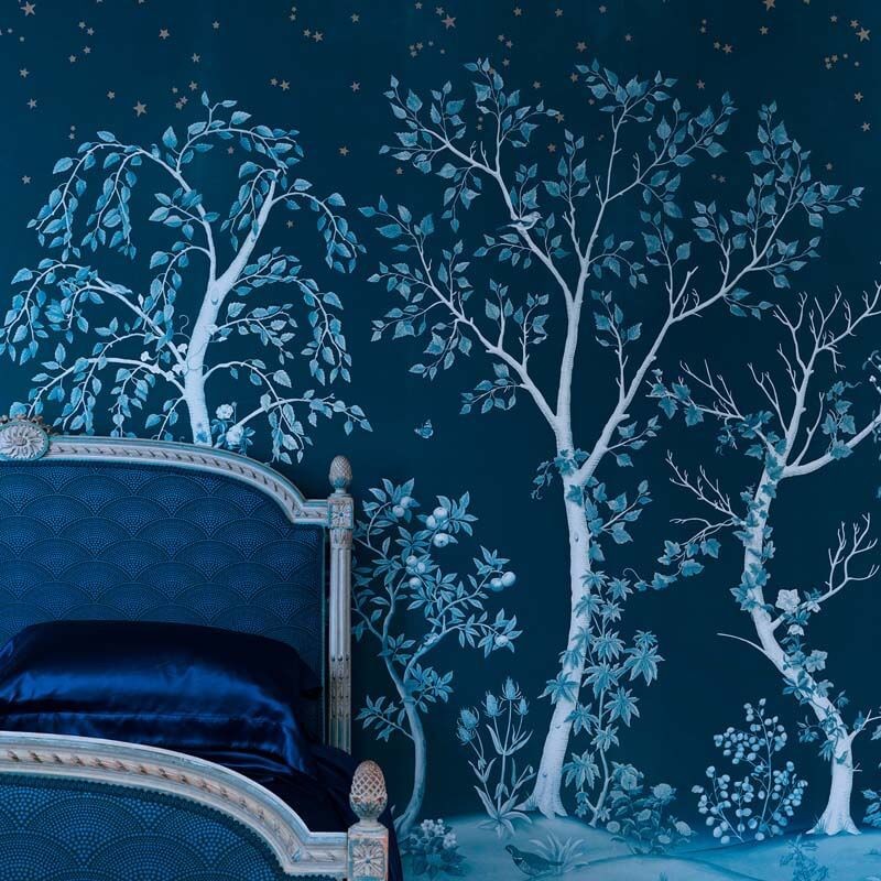 Seasonal Woods célèbre la charmante sophistication d'une nature préservée. Conservant l'authenticité de l'icône vivace de Cole & Son, Woods, Seasonal Woods présente des bouleaux argentés peints d'une main plus douce, entourés d'une symphonie de flore et de faune boisées tout au long de l'année. Comme un mouvement de ballet, chaque arbre est plein de vie. Les papillons voltigent, les pics, les rouges-gorges et d'autres créatures se perchent dans les branches avec du lierre, du houx, des ronces et des pommes traînantes affichant la générosité de la haie au fur et à mesure qu'elle change au fil des saisons.