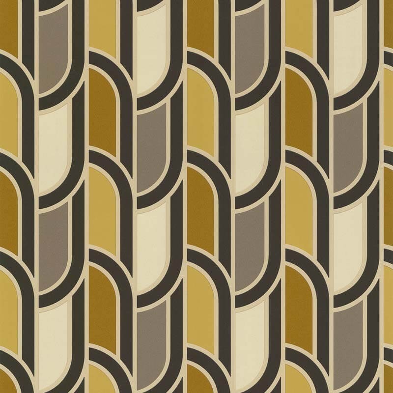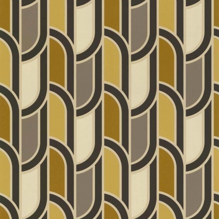 Papier peint vintage géométrique Marcel coloris ocre marron. Les papiers peints des années 70 sont de retour. Vous rappelez-vous des motifs géométriques et colorés de la période ? Celui-ci en est le parfait exemple, des formes arrondies recouvrent ce décor mural vintage. Le tout est composé du nuances beiges marron, taupe, ocre et jaune paille.