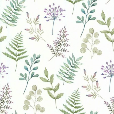 Imaginez-vous entouré par une forêt luxuriante, où chaque plante et chaque feuille est capturée avec précision sur ce papier peint. Les nuances de vert évoquent un sentiment de renouveau et de croissance, tandis que les touches de mauve ajoutent une douceur et une douce sensation de féminité à la décoration.