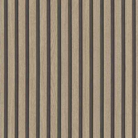 Papier peint imitation tasseaux de bois coloris chêne naturel. Ce papier peint est la solution idéale pour créer une ambiance chaleureuse et authentique dans votre intérieur. Avec son aspect très réaliste, il donnera l'impression d'avoir de véritables planches de bois sur vos murs.
