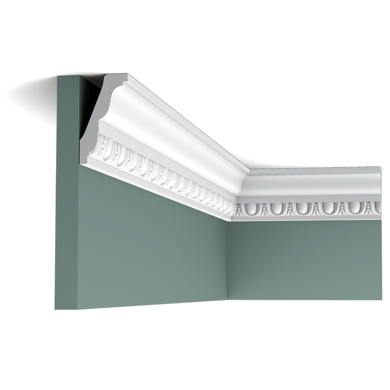 Le profilé ORAC DECOR C212 est une corniche ornée de motifs d'oves est inspirée de l'architecture classique. Ce joli design associé à de fins détails s'intègre sans p