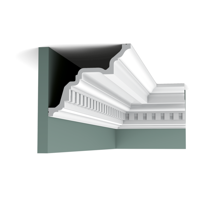 Les grandes corniches ORAC C422, aux motifs dentelés apporteront une touches de classe dans n'importe quel intérieur. Elles permettront une élégante transition entre le mur et le plafond, tout en apportant une impression de grandeur à vos espaces. Cet élément décoratif donnera du caractère à toutes vos pièces.