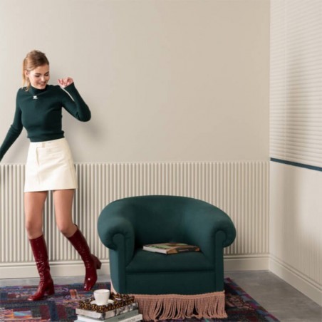 W214F Hill Bead XL sont des panneaux flexibles uniques qui offrent un lambris classique avec une touche très moderne et un effet trompe-l'oeil de formes tournées vers l'intérieur ou l'extérieur, selon la perspective et le point de vue de l'observateur. De plus, les deux formats différents permettent de créer différents motifs sur le mur. Une expérience 3D à part entière ! Conçu par Orio Tonini.