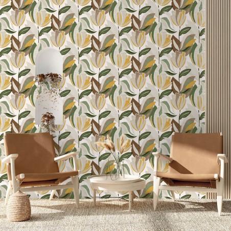 Papier Peint Lutece Dolce Vita Tulipa Moutarde Et Marron 11230702