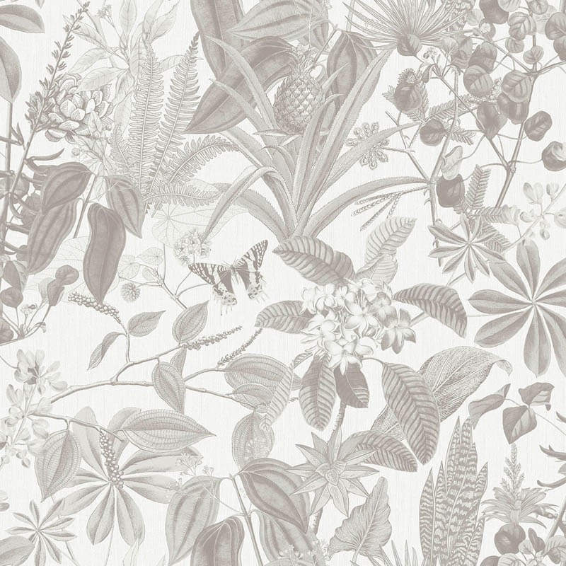 Papier Peint Lutece Fidji Ananas & Papillon Gris Et Blanc 8506-1