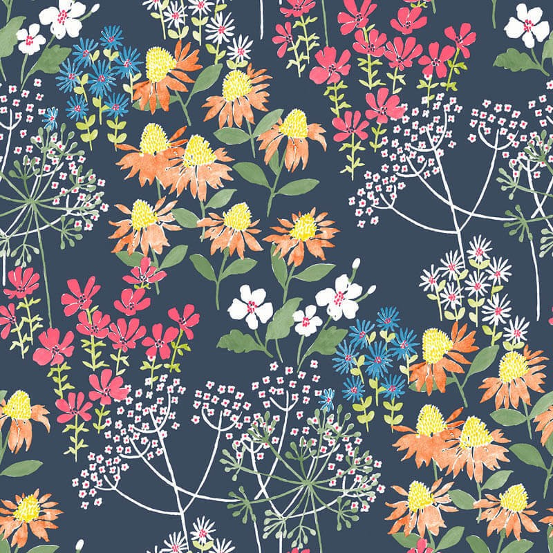 Papier Peint Lutece Harmony Cultivate Rose Fond Bleu Indigo Fd27016