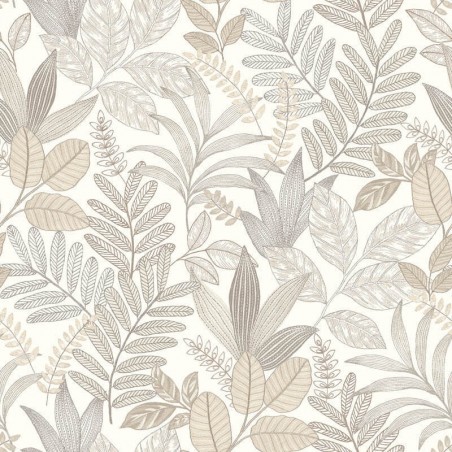 Papier Peint Lutece Allure Feuillage Brodé Lin Et Marron Al26290