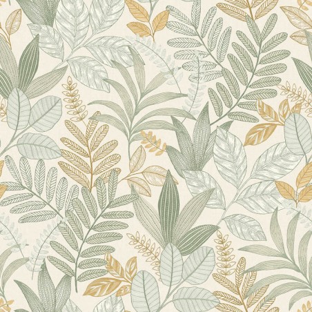 Papier Peint Lutece Allure Feuillage Brodé Vert Et Beige Al26294