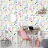 Ambiance ludique et contemporaine : Le mix des différentes typographies et des couleurs vives donne à ce papier peint un côté moderne et tendance, idéal pour créer un espace qui reflète une personnalité affirmée et pleine d'énergie.