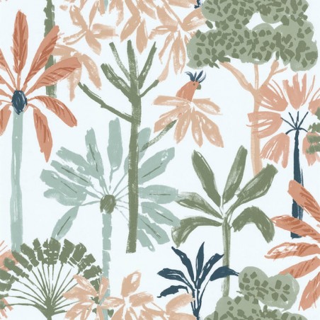 Le papier peint "Palmeraie" de la collection Les Aventures par Lutèce vous invite à un voyage exotique au coeur d'un univers tropical. Avec ses palmiers majestueux qui se dressent vers le ciel et ses perruches colorées perchées entre les branches, ce design vous plonge dans une atmosphère sereine et vivante, où la nature prend toute son ampleur.