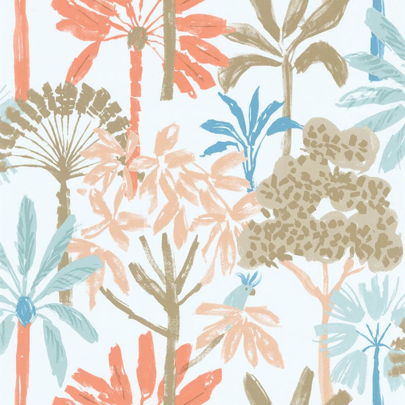 Papier Peint Lutèce Les Aventures 2024 Palmeraie Corail Et Turquoise - 36240405