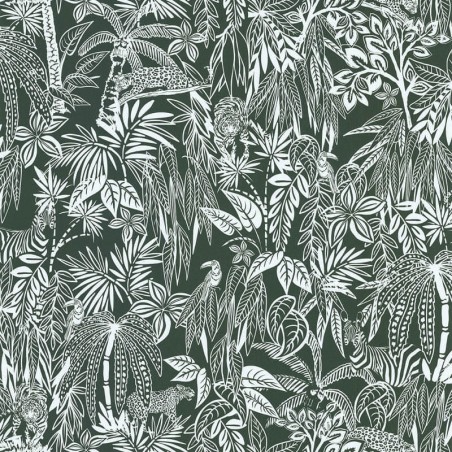 Un motif captivant : Ce design foisonnant met en scène une jungle dense, où des tigres, léopards et toucans se cachent parmi les branches. Chaque détail incite à l'exploration, transformant cette tapisserie en un jeu de piste visuel fascinant qui éveillera la curiosité de vos enfants.