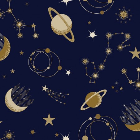 Un voyage spatial fascinant : Ce décor mural représente un univers infini peuplé de planètes, de lunes et d'étoiles, offrant une expérience visuelle unique pour stimuler la curiosité et la créativité de votre enfant. Les teintes dorées et bleu marine apportent une ambiance douce et mystérieuse, idéale pour une chambre d'enfant ou de bébé.