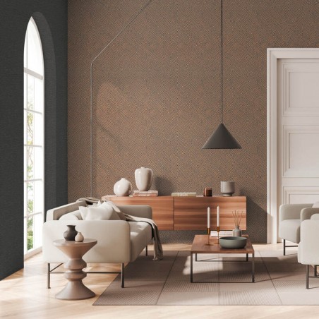 Avec ce papier peint Lutèce Daniel Hechter 2024 Jeu de Traits Noir et Orange Cuivré, transformez votre intérieur en un espace chic, audacieux et tendance.