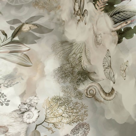 Découvrez ainsi la vive Mimic Moth, l'adorable Dandelion Crane, le très sociable Golden Tiger, l'intrépide Pogo Goat ou encore, le paisible Queen Cobra. Pour les mettre à l'honneur, chaque revêtement mural s'inspire des caractéristiques de l'un de ces animaux. Tandis que certains motifs nous racontent une histoire, d'autres stimulent nos sens par le biais d'un florilège d'images et de textures. Les motifs de leur pelage, plumage ou peau, sont rehaussés par une palette de couleurs à la saisissante combinaison. A travers cette gamme, ces créatures disparues sont porteuses d'un message fort : elles nous rappellent combien il est essentiel de chérir chaque instant de notre existence, en accumulant merveilleux moments et souvenirs fabuleux et ainsi, de célébrer la vie aussi longtemps qu'elle dure.