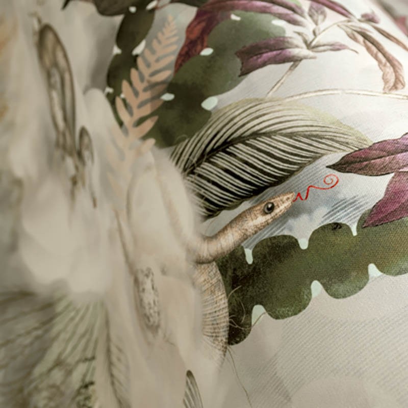 Description Une farandole d'espèces aujourd'hui disparues, restées dans nos mémoires pour leur exceptionnelle douceur et leur amour de la vie, imprimée numériquement sur des textiles au toucher doux