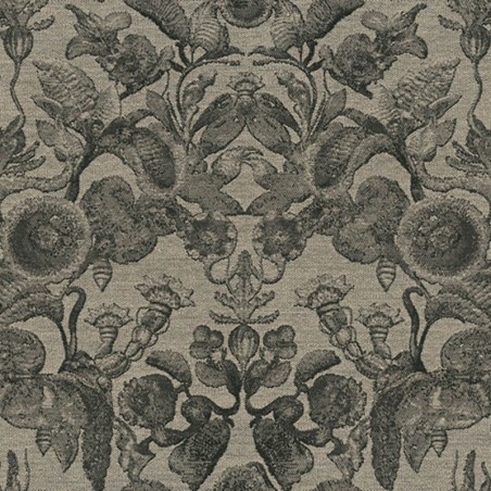 Description Motif floral bicolore aux multiples détails de type jacobéen imprimé sur un textile jacquard