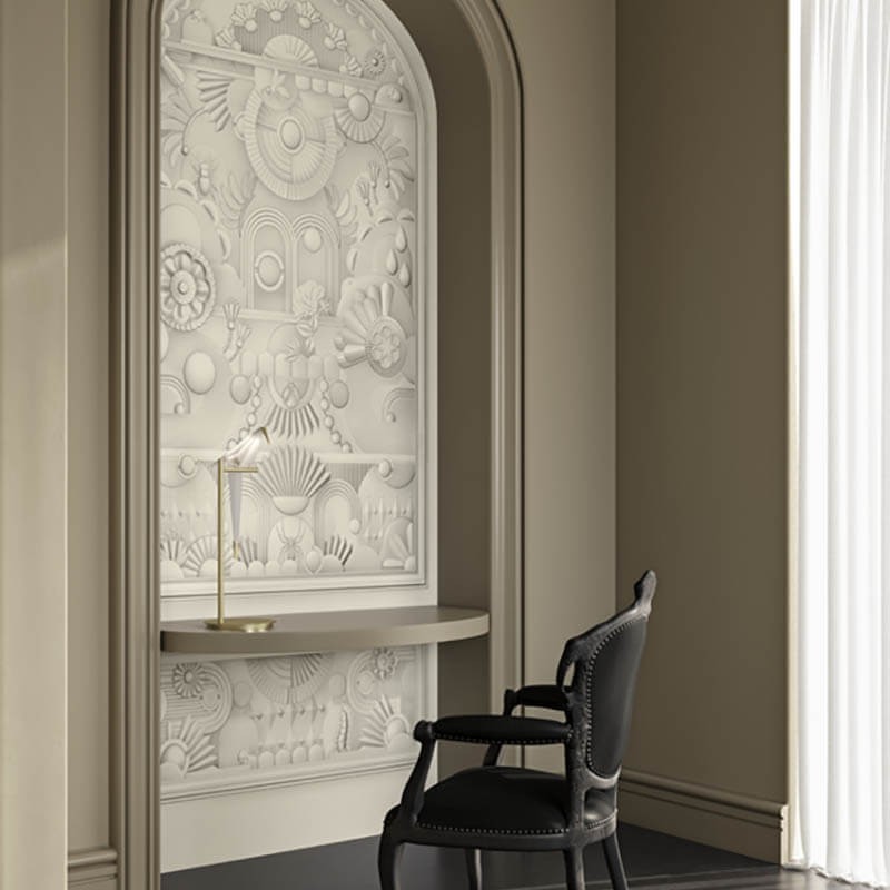 Description Un superbe revêtement mural qui s'inspire des moulures décoratives, et dont l'aspect daim apporte douceur et sensorialité