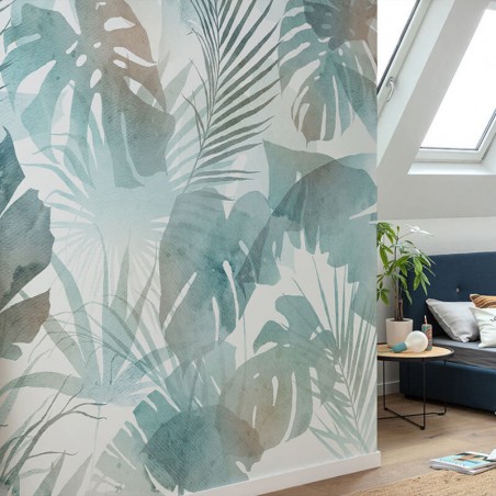 Panoramique Aqua Flora L300xH250cm FLX6-046 Komar collection Flair Ce papier peint panoramique présente une douce représentation de feuillages tropicaux et confère à la maison une atmosphère exotique et apaisante. Le monde végétal varié apporte de manière discrète un peu de nature dans la maison et crée une ambiance naturelle qui invite à la détente et au bien-être. Que ce soit dans le salon, la chambre à coucher ou la salle de bain, ce motif de papier peint attirera l'attention dans chaque pièce. La teinte discrète et le motif de feuilles en filigrane s'intègrent harmonieusement dans différents styles d'aménagement et apportent une agréable fraîcheur. Collection Flair : riche en couleurs, sur des designs innovants. La collection Flair présente une palette vivante de couleurs vives et combine des éléments rétro avec un flair moderne. Des formes ludiques et des designs innovants donnent un nouvel éclat aux tendances passées. L'utilisation de matériaux respectueux de l'environnement et l'intégration artistique d'éléments naturels donnent une nouvelle dimension au design. La collection de papiers peints Flair incarne l'avenir du design et séduit par son élégance incomparable. Les motifs innovants transforment chaque mur en une oeuvre d'art individuelle. C'est un lieu de possibilités infinies où les frontières entre hier et demain s'estompent. Des méthodes de production durables permettent de créer des papiers peints panoramiques qui non seulement éveillent les sens, mais respectent également la nature. Chaque fois que nous regardons ces papiers peints, nous vivons des moments d'harmonie intérieure et créons un espace pour nous-mêmes. La restitution des couleurs varie selon letype d'écran. Les caractéristiques des produits sont données à titre indicatif.