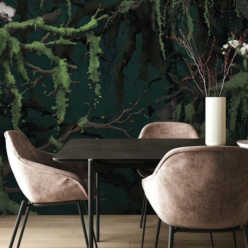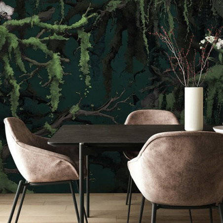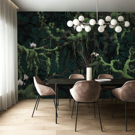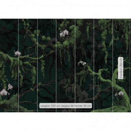 Panoramique Orch-Idee L350xH250cm FLX7-019 Komar collection Flair Qu'est-ce qui peut bien se cacher dans les profondeurs de cette forêt? Ce papier peint panoramique mystique montre les profondeurs d'une forêt. Les tons verts foncés et les branches couvertes de mousse créent une atmosphère magique et des fleurs éparses ornent les branches. Ce papier peint panoramique sombre confère à la pièce une ambiance unique. Collection Flair : riche en couleurs, sur des designs innovants. La collection Flair présente une palette vivante de couleurs vives et combine des éléments rétro avec un flair moderne. Des formes ludiques et des designs innovants donnent un nouvel éclat aux tendances passées. L'utilisation de matériaux respectueux de l'environnement et l'intégration artistique d'éléments naturels donnent une nouvelle dimension au design. La collection de papiers peints Flair incarne l'avenir du design et séduit par son élégance incomparable. Les motifs innovants transforment chaque mur en une oeuvre d'art individuelle. C'est un lieu de possibilités infinies où les frontières entre hier et demain s'estompent. Des méthodes de production durables permettent de créer des papiers peints panoramiques qui non seulement éveillent les sens, mais respectent également la nature. Chaque fois que nous regardons ces papiers peints, nous vivons des moments d'harmonie intérieure et créons un espace pour nous-mêmes. La restitution des couleurs varie selon le type d'écran. Les caractéristiques des produits sont données à titre indicatif.