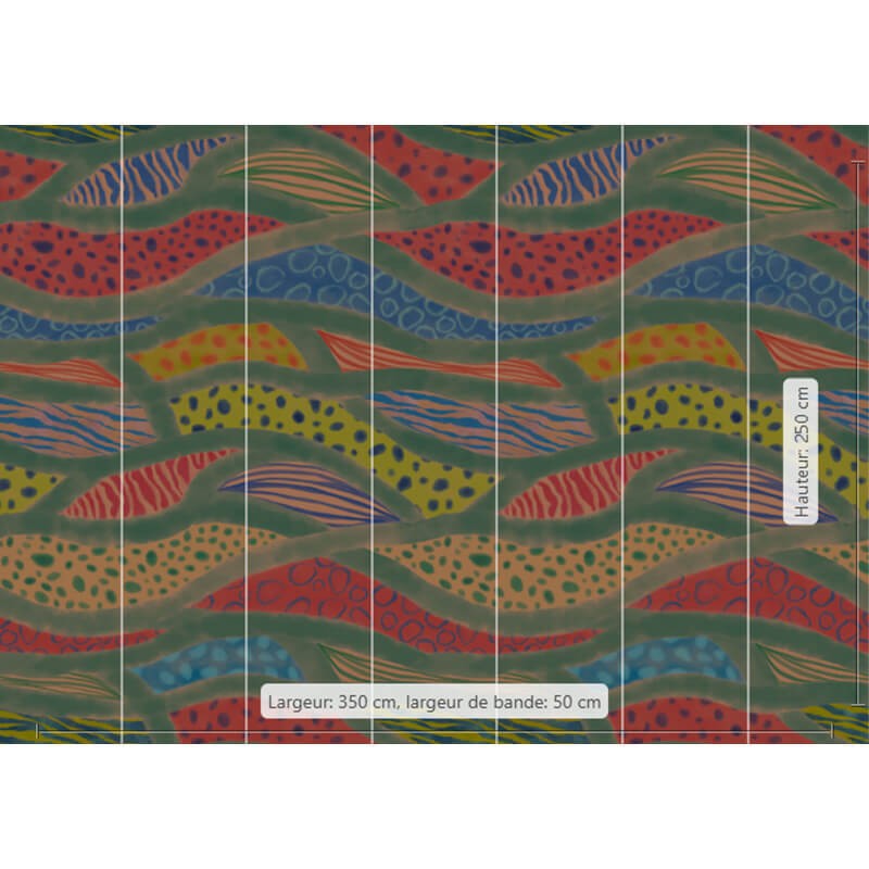 Panoramique Wave Symphony L350xH250cm FLX7-023 Komar collection Flair Des motifs colorés en forme de vagues confèrent au papier peints panoramiques un aspect dynamique. Les points, les rayures et les motifs Leo se fondent harmonieusement dans les vagues et créent un design vivant. Ce papier peint panoramique flamboyant et extravagant transforme chaque pièce en un point de mire et attire tous les regards. Il confère à la pièce non seulement du caractère, mais aussi une atmosphère unique. Avec son élégance ludique, il deviendra à coup sûr le point fort de tout intérieur. Collection Flair : riche en couleurs, sur des designs innovants. La collection Flair présente une palette vivante de couleurs vives et combine des élémentsrétro avec un flair moderne. Des formes ludiques et des designs innovants donnent un nouvel éclat aux tendances passées. L'utilisation de matériaux respectueux de l'environnement et l'intégration artistique d'éléments naturels donnent une nouvelle dimension au design. La collection de papiers peints Flair incarne l'avenir du design et séduit par son élégance incomparable. Les motifs innovants transforment chaque mur en une oeuvre d'art individuelle. C'est un lieu de possibilités infinies où les frontières entre hier et demain s'estompent. Des méthodes de production durables permettent de créer des papiers peints panoramiques qui non seulement éveillent les sens, mais respectent également la nature. Chaque fois que nous regardons ces papiers peints, nous vivons des moments d'harmonie intérieure et créons un espace pour nous-mêmes. La restitution des couleurs varie selon le type d'écran. Les caractéristiques des produits sont données à titre indicatif.