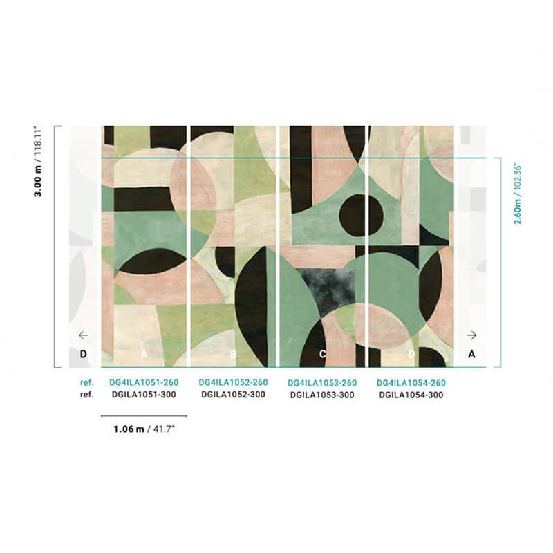 Le panoramique Patina de la collection Aquila signée Khrôma by Masureel est une oeuvre murale abstraite qui transforme vos espaces en véritables galeries d'art. Composé de formes géométriques colorées disposées de manière aléatoire, il crée un effet monumental captivant, apportant profondeur et dynamisme à votre intérieur.