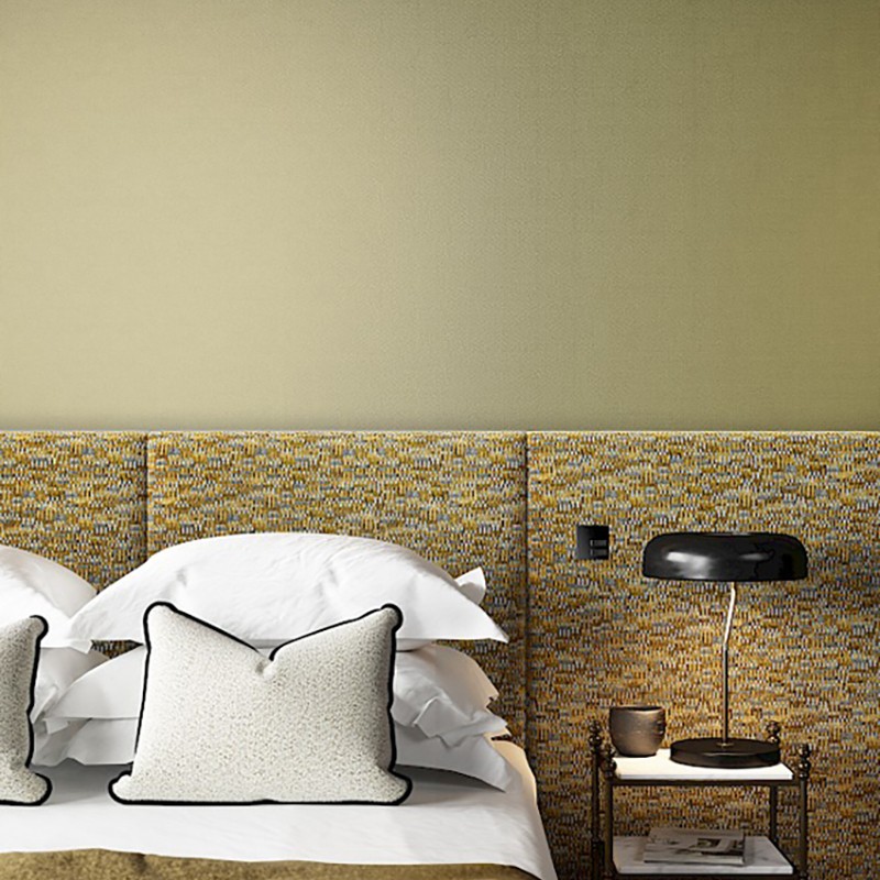 Le papier peint Lux Kaki s'harmonise parfaitement avec des éléments en bois naturel, des textiles en lin ou en coton, et des accessoires aux tons neutres ou dorés. Il est idéal pour créer une ambiance chaleureuse et apaisante dans un salon, une chambre ou un bureau.