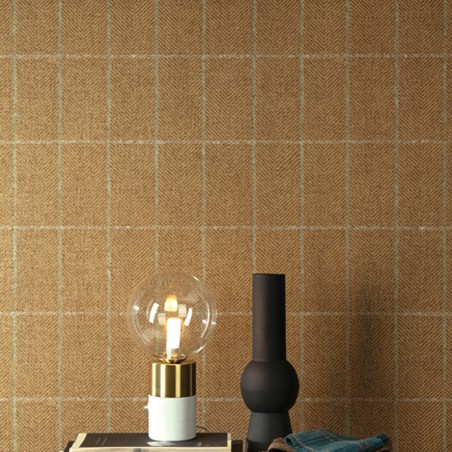 Le papier peint Pablo par Masureel est un revêtement mural élégant qui se distingue par son motif textile raffiné. Sa surface affiche un subtil dessin à chevrons monochromes, rehaussé par un motif à carreaux classiques doté d'une finition métallisée sophistiquée.