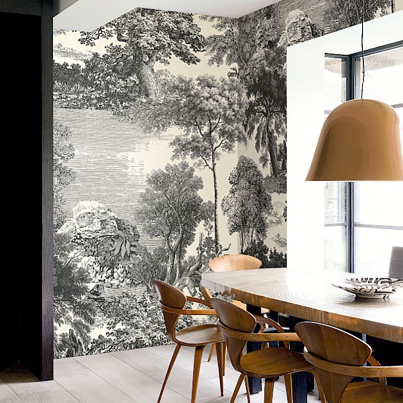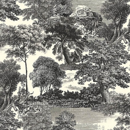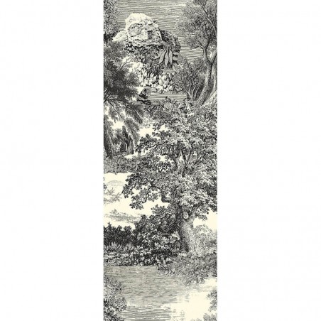 Le papier peint Salcey, issu de la collection Amazone par Masureel, est une véritable oeuvre d'art murale qui célèbre la beauté brute et poétique de la nature. Ce panneau décoratif panoramique s'inspire d'un paysage champêtre, où arbres luxuriants, rivière sinueuse et végétation dense sont minutieusement dessinés à la main dans un style gravé raffiné.