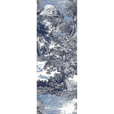 Le papier peint Salcey, issu de la collection Amazone par Masureel, est une véritable oeuvre d'art murale qui célèbre la beauté brute et poétique de la nature. Ce panneau décoratif panoramique s'inspire d'un paysage champêtre, où arbres luxuriants, rivière sinueuse et végétation dense sont minutieusement dessinés à la main dans un style gravé raffiné.