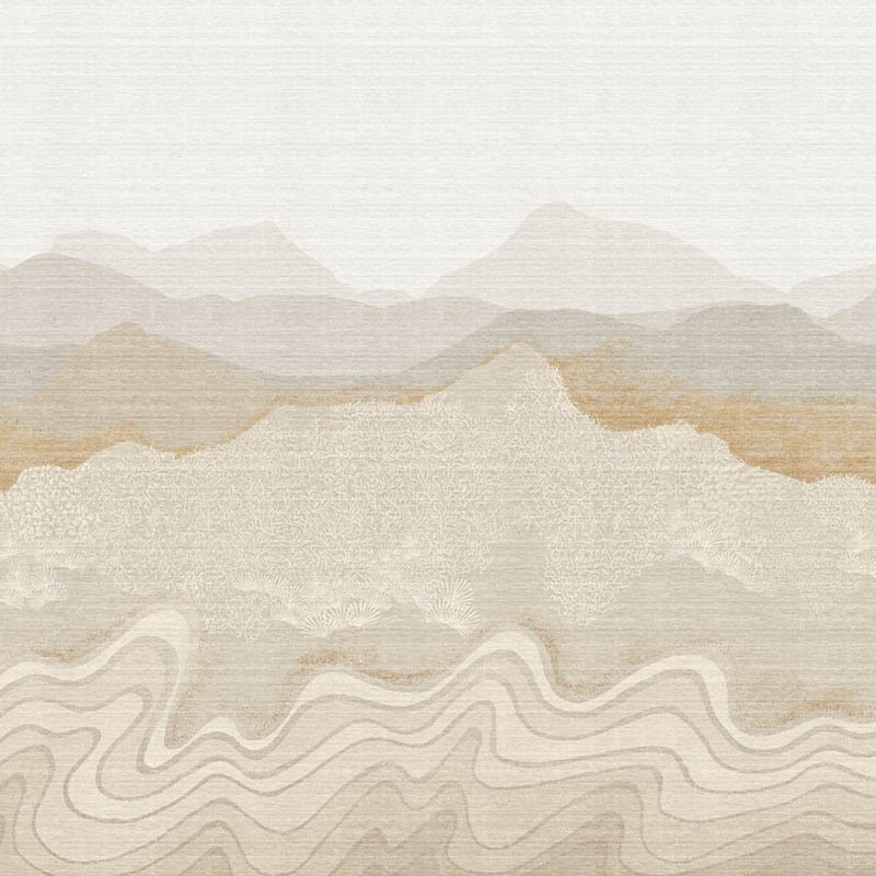 Ce revêtement mural panoramique évoque une chaîne de montagnes brumeuse et lointaine, avec une finesse de dessin qui lui confère à la fois modernité et poésie intemporelle. Le jeu subtil entre force graphique et délicatesse des teintes crée une ambiance apaisante et sophistiquée, idéale pour sublimer un salon, une chambre ou un espace de réception.