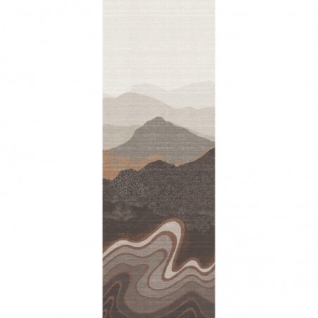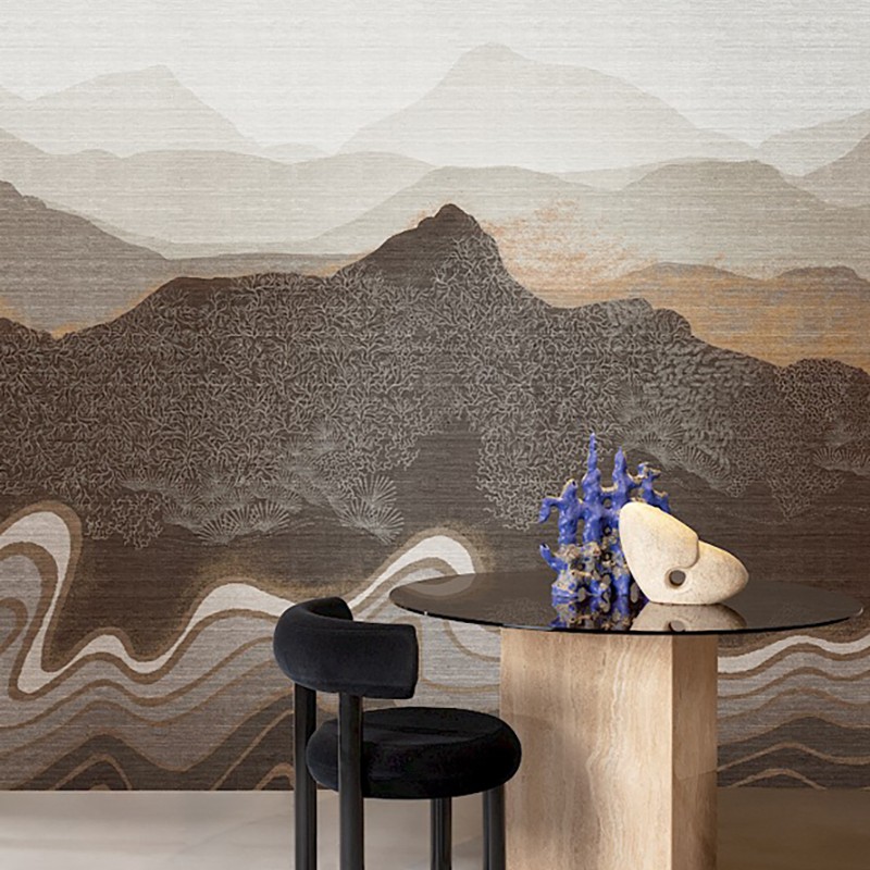 Ce revêtement mural panoramique évoque une chaîne de montagnes brumeuse et lointaine, avec une finesse de dessin qui lui confère à la fois modernité et poésie intemporelle. Le jeu subtil entre force graphique et d??licatesse des teintes crée une ambiance apaisante et sophistiquée, idéale pour sublimer un salon, une chambre ou un espace de réception.