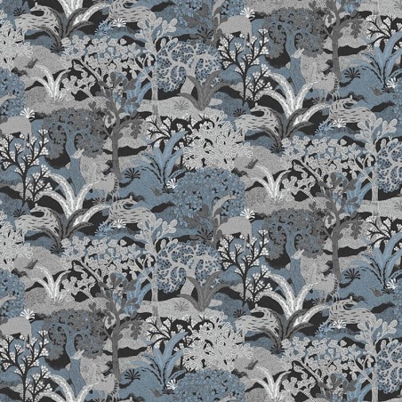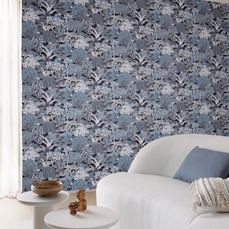Plongez dans un univers luxuriant avec le papier peint Fabulo de la collection Amazone par Khrôma by Masureel. Ce revêtement mural intissé présente un motif détaillé représentant une scène dense de végétation, avec des arbres majestueux et un feuillage abondant, créant une atmosphère immersive et raffinée.
