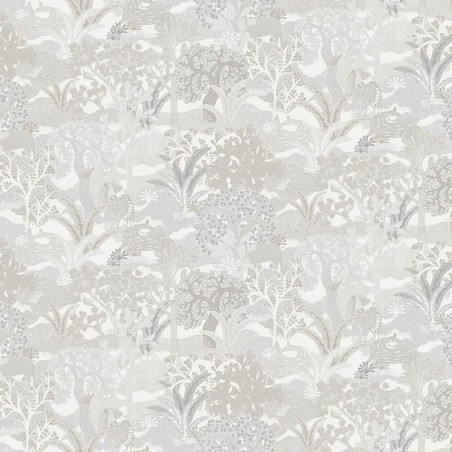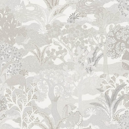 Plongez dans un univers luxuriant avec le papier peint Fabulo de la collection Amazone par Khrôma by Masureel. Ce revêtement mural intissé présente un motif détaillé représentant une scène dense de végétation, avec des arbres majestueux et un feuillage abondant, créant une atmosphère immersive et raffinée.