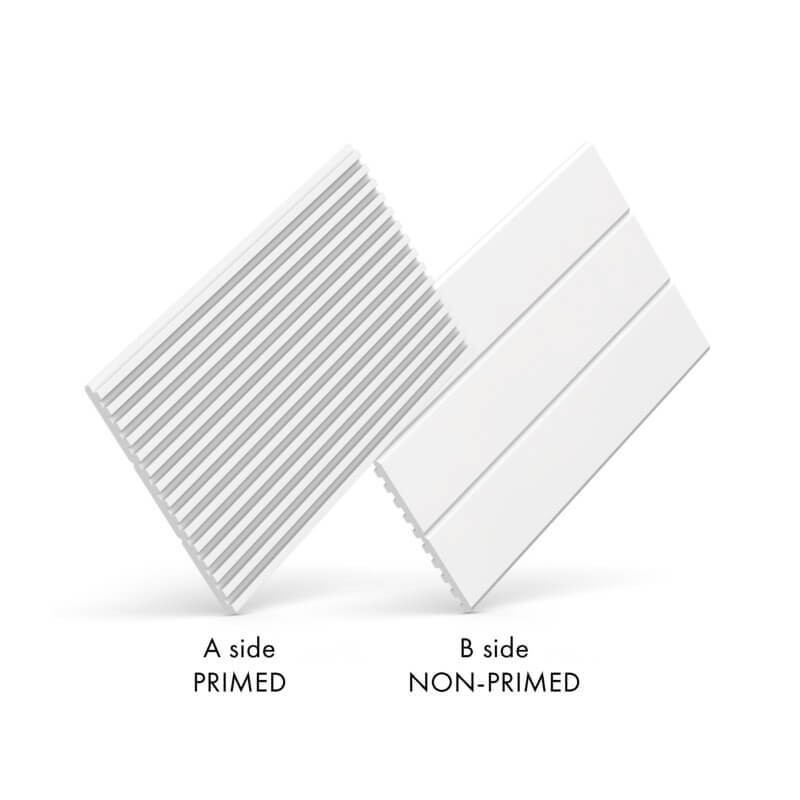 Seul le côté A est couvert d'une couche d'apprêt. Sur la face B, utilisez deux couches de peinture finale ou appliquez d'abord une couche d'apprêt, puis la peinture finale.
