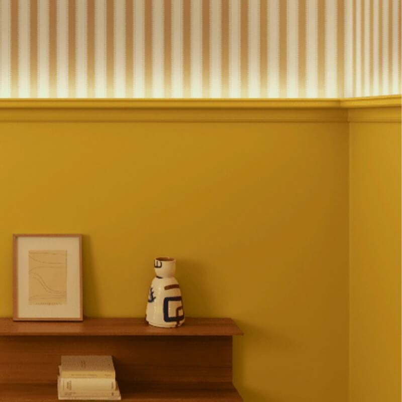 Placé dans nos corniches lumineuses, grâce un profilage interne spécifique, l'éclairage indirect, par ruban led diffusera une lumière douce, qui crée une ambiance chaleureuse de la lumière indirecte. Idéal pour les salons, chambres et autres espaces de détente, combinable avec du papier peint